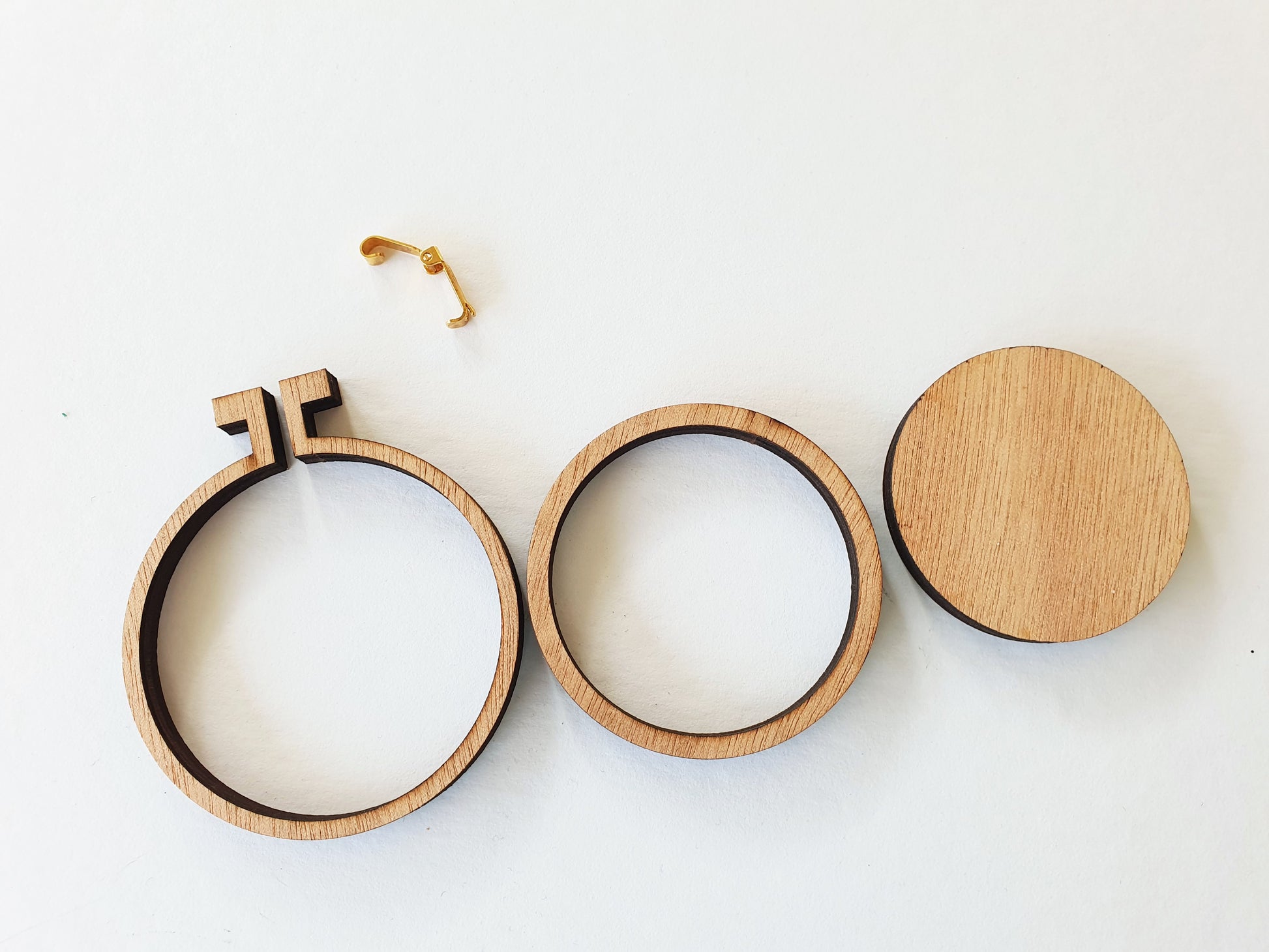 - Laser cut wooden hoop (3 pieces). Outer Diameter 6cm