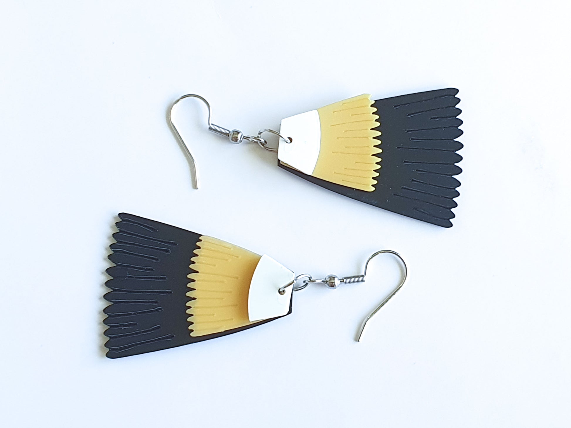 Pūteketeke Feather Earrings - BIRD OF THE CENTURY | Recycled Ice Cream Container Lids